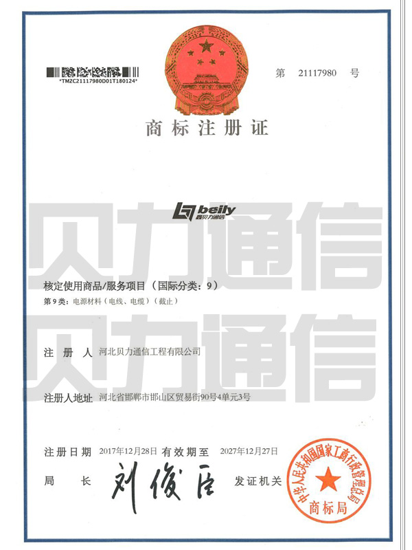 恭喜河北贝力通信工程有限公司注册商标。