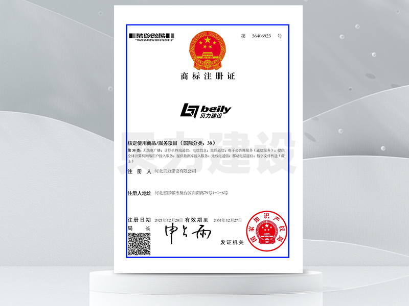 贝力建设商标证书
